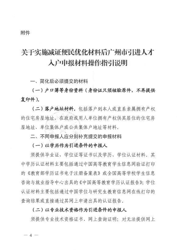 附:《关于实施减证便民优化广州市引进人才入户申报材料的通知》原文如下,建议想入户广州的朋友仔细研读: